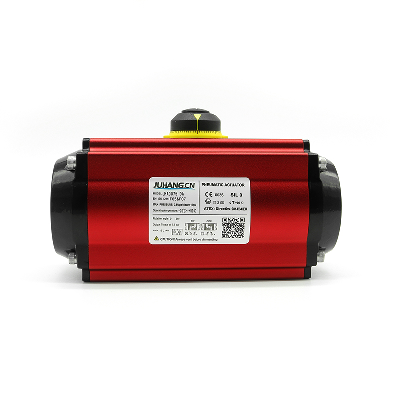 Racki ja hammasratta pneumaatilist ajami topelttoimingut JHA0075DA toiteallikaks on suruõhk, mis on ajendatud kolvikraami sirge liikumisest väljundvõlli käigukasti juhtimiseks ja väljundpneumaatilise ajami nurgalöögist. Kuulklapis, liblikaklapis, pistikventiili ja muu nurgalöögiklapi lüliti ja reguleerimise laialdaselt kasutatav, saab ka muul pöörlevatel puhkudel rakendada, on ideaalne seade tööstusliku torujuhtme automatiseerimise juhtimise saavutamiseks.
